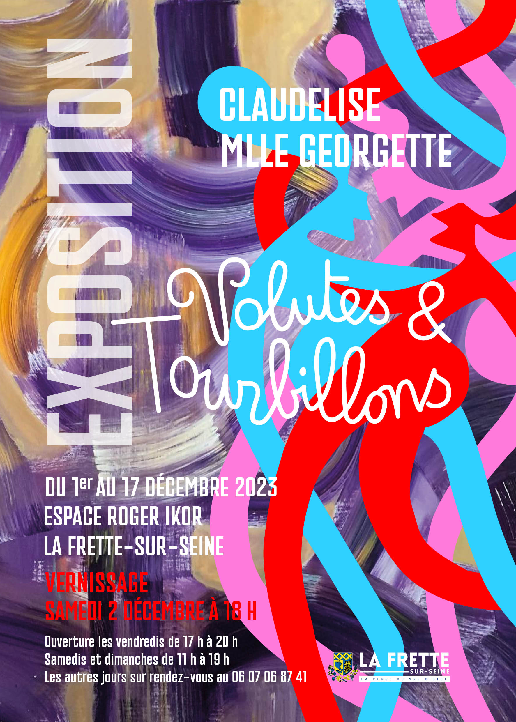 Claudelise et Mlle Georgette vous entraînent dans le sillage de leur exposition « Volutes & Tourbillons » qui s’installe à l’Espace Ikor, du 1 au 17 décembre 2023, à La Frette-sur-Seine.