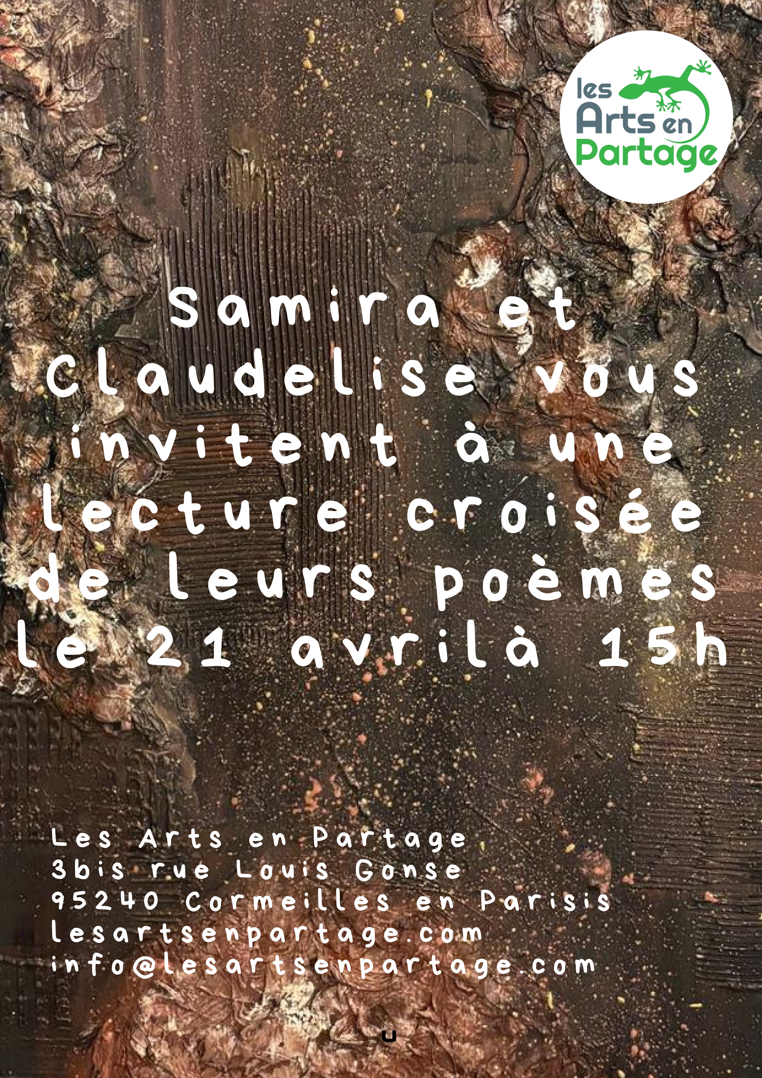 En écho au Printemps des Poètes, et dans le cadre des “Arts en Partage”, Samira et Claudelise proposent une “lecture croisée” de leurs poèmes.